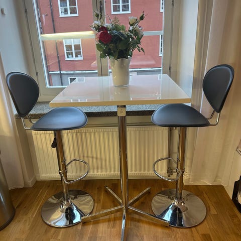 Barbordsgrupp från Mio: Midori barbord + 4 Tracy barstolar.