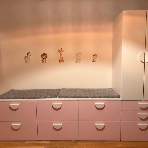 IKEA Småstad barnmöbel förvaring vit med rosa handtag