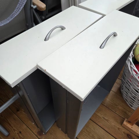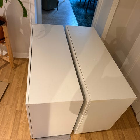Två stora och djupa lådor till 60 cm-underskåp. (Suttit i det köksskåp där vi nu installerat en ugn.) Praktiska lådor för kök: kastruller eller andra köksgrejor och du når enkelt även det som är längst in. Mått enligt bilder. Den ena lådan något större än den andra. Fräscha om än ej helt nya. Alla skruvar och lister för att installera finns med. Obs! Osäker på vilket märke dessa är, kanske Ikea eller Marbodal men vet inte säkert - men standardmått så borde passa i normala köksskåp.