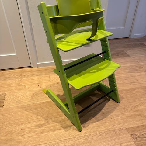 Stolen är av äldre modell. Moderna tillbehör, som Stokkes insats för nyfödda, är inte kompatibla med denna.