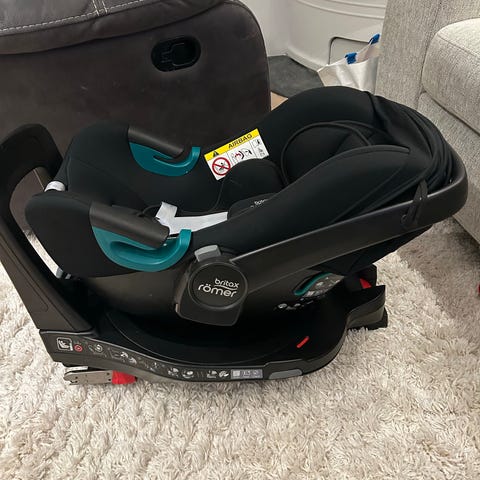 Britax Römer babyskydd med bas. Basen har Isofix och skyddet är kompatibelt med barnvagnar från Britax.