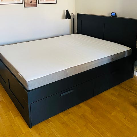 Allt i bra skick, lådor hela och funkar bra. Använt madrasskydd ovanpå bäddmadrassen sen dag ett.