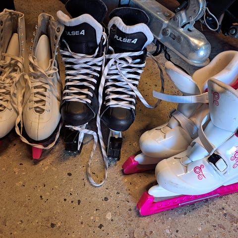 Fem par Skridskor runt 200-210 mm (passar 5-7 åringar). Köp alla fem par för 200kr