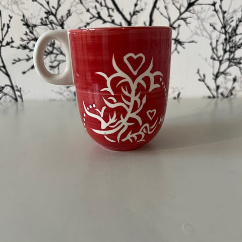 Shinzi Katoh mugg med giraffmotiv i gul färg. Tillverkad i keramik med tryck av en giraff och text. Passar för dagligt bruk som dryckesbehållare.
