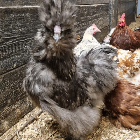 En ljuvlig ungtupp av sorten Creme Legbar söker nytt hem. (Vänster i bild.)
