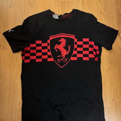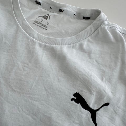Puma T-shirt i storlek M, svart färg och tillverkad i bomull. Passar för män och har en rund halsringning med kontrasterande kantdetaljer.