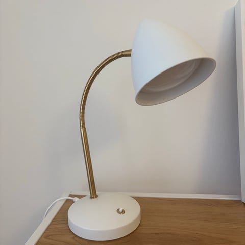 Fin vit lampa till fönster, sängbord, skrivbord eller annan plats.