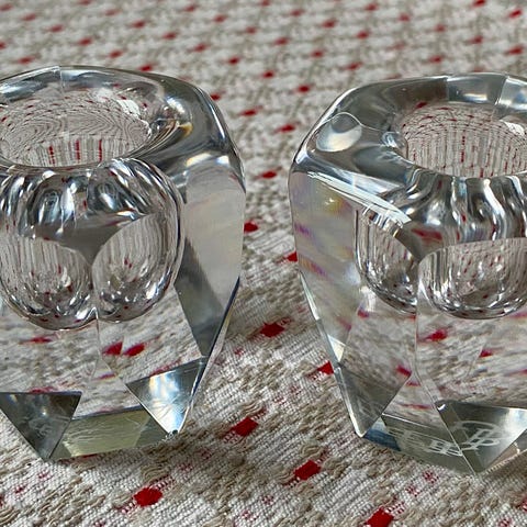 Ljusstaken är tillverkad i metall med guldförgyllning och prydd med hängande kristaller. Passar för dekorativt bruk och ljushållning.