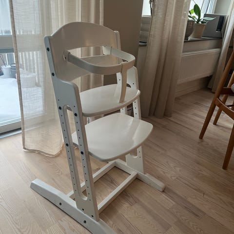 2st BabyDan barnstol i trä, vit färg. i bra skick.