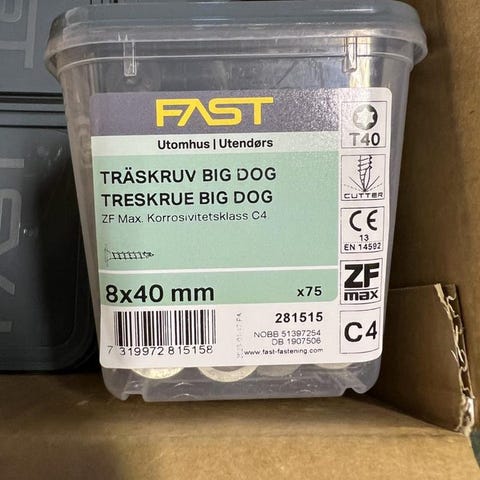 Infärstning/byggskruv/spikplugg/farmarskruv