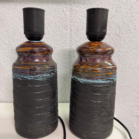 Två guldiga lampfötter, bordslampa
