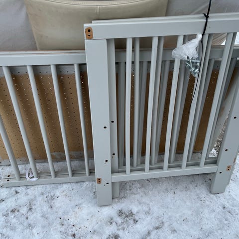 Spjälsängen har sina skavanker men inget som lite färg inte kan fixa!