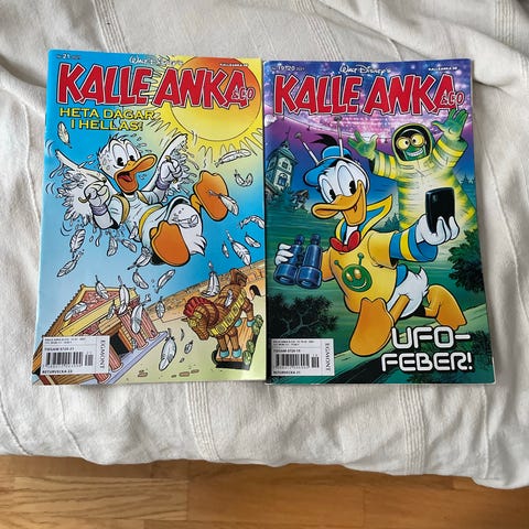 10+Kalle Anka och Musse Pigg serietidningar i olika utgåvor och storlekar. Serien innehåller klassiska tecknade berättelser med kända Disney-karaktärer. Kalle Anka pocket 50 kr.