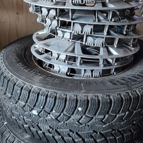 Lassa vinterdäck 7-8 mm kvar. Sparsamt använda på husbil.
