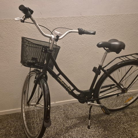 Hej! Jag säljer min cykel på grund av flytt. Den köptes helt ny för 2 år sedan. Cykeln är 28 tum, svart, har cykelkorg och pakethållare, 3 växlar samt frambroms och fotbroms. Det finns ett även ett lås vid bakre cykelhjulet. Den är i gott skick och bra underhållen, och har endast små repor. Utöver det fungerar allt som det ska. Kontakta gärna vid intresse!
