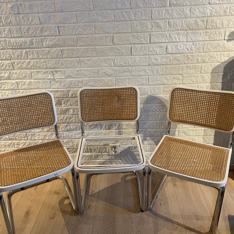 9 st stolar i furu. Design Göran Malmvall, Svensk Fur.