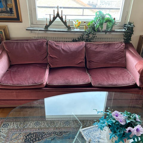Båda möblerna är i gott skick där det enda visuella felen är ett litet 1x1cm hack på baksidan av fåtöljen samt små skavanker på träbenen. Sen finns det små slitagehål underdynorna (se bilder).