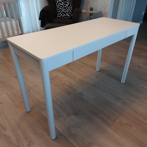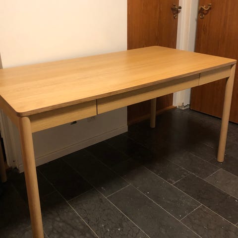 Fint skrivbord i ekfanér från IKEA som tyvärr är för stort för vårt hem.