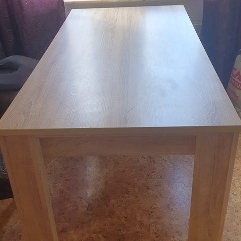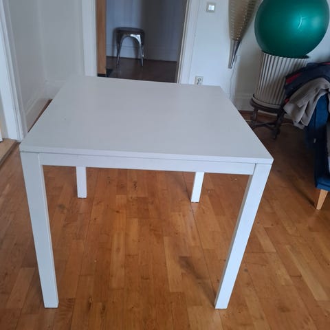 Matbord, vitt högglans i gott skick säljes. Lite smalare än vanligt, så passar i trängre utrymmen där det annars kan bli för trångt. Ett rejält och relativt tungt bord, med rejäla ben. Benen är avskruvade för transport. Lite små skönhetsfel i form av mindre färgflagor, se bild, men i stort i väldigt fint skick, någon enstaka repa.