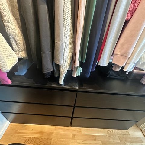 Garderoben är i mycket fint skick och modellen finns inte längre att köpa ny, vilket gör detta till ett unikt tillfälle att få tag på en riktigt snygg lösning med hög kvalitet. Gott om förvaring med både lådor, hyllor och plats för hängande kläder.