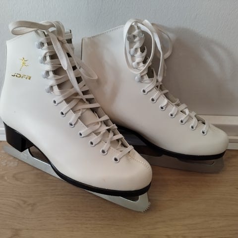 Performance skridskor i storlek 39. Bekväma skridskor. Svart färg med vita detaljer och vita skridskobladsstöd. Utrustade med snörning och spänne för justering och stabilitet.