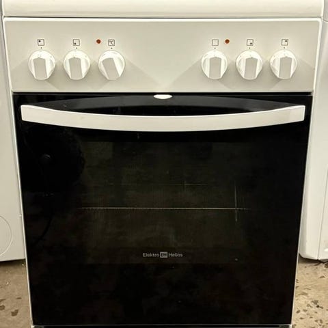 ElektroHelios spis med glaskeramikhäll och varmluftsugn, vit, 60 cm, 400 V, mod. SK6554. Fungerar helt felfritt. Gott skick.