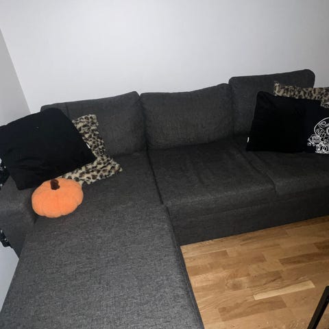 En bäddsoffa i gott skick, endast använts en handfull gånger. Mer info finns här: https://www.ikea.com/se/sv/p/friheten-hoernbaeddsoffa-med-foervaring-skiftebo-moerkgra-s39216754/