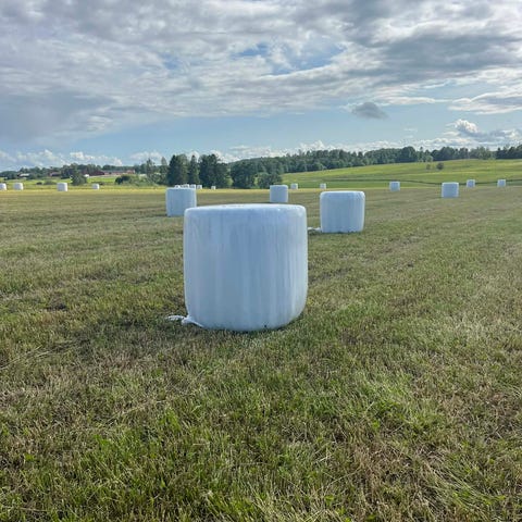 Sju hösilagebalar ca 200 kg/styck. Mindre balar i storleken 80x70x120 cm. Från 2024. Finns i Väderstad, Östergötland. Går köpa på lösvikt, per stycke eller hela parti till rabattpris.