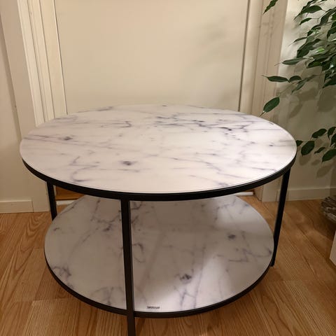 Runt kompositbord ute eller inne liknar ekfärg och vita ben i metall