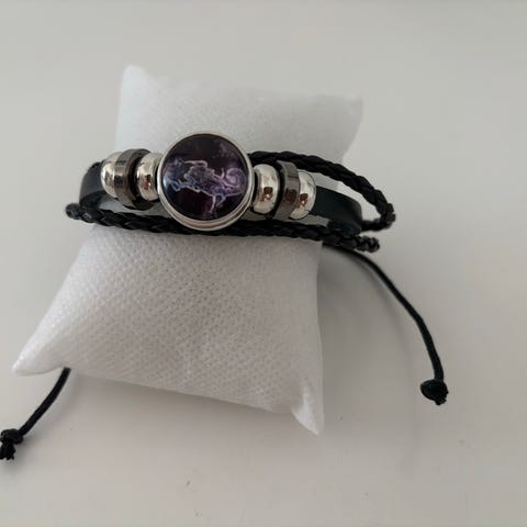 Armband tillverkat i flätat läder med detaljer i stål. Armbandet är designat för unisex och har en kombination av silver- och guldfärgade metallringar. Lämpligt som accessoar för både vardag och mer formella tillfällen.