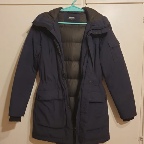 Säljer nu en skidjacka från Everest i storlek 38, dim- och marinblå, snölås, reglerbar luva, liftkortsfickq, muddar vid ärmslut, vattenpelare 5000