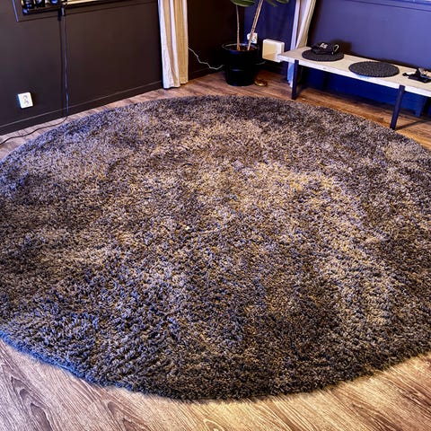 Säljer två fina runda mattor i mörkgrå färg.