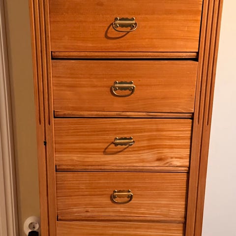 Fin byrå / skåp i massivt trä, mycket stabil och extremt tung så medtag bärhjälp och lite till!!! Låsbara dörrar med nyckel som finns med. Ej trasig. Mått nedanför: