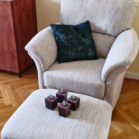 En 1,5-sits grå fåtölj från Ikea. Den är rymlig och bekväm.