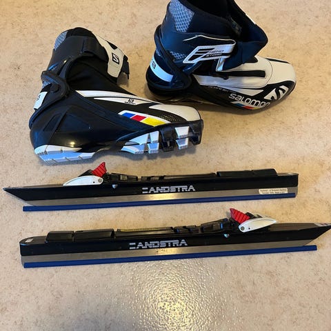 Isvidda långfärdsskridskor 44 cm inkl Ny Rottefella Skate NNN bindning samt Fischer Combi Skate i Nyskick strl 41 (26 cm inv mått)
