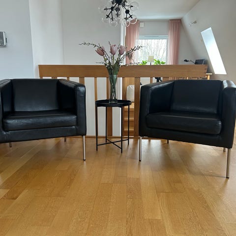 Säljer 2 st fåtöljer med fotpallar pga renovering och platsbrist.