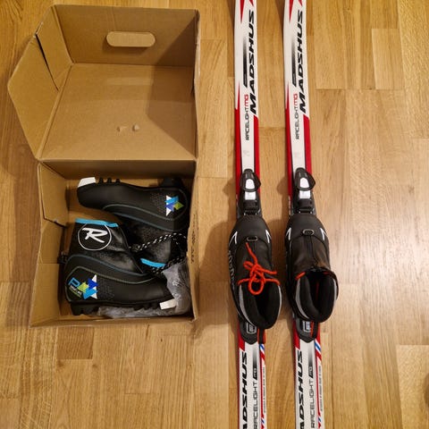 Säljer ett längdskidspaket för yngre barn.