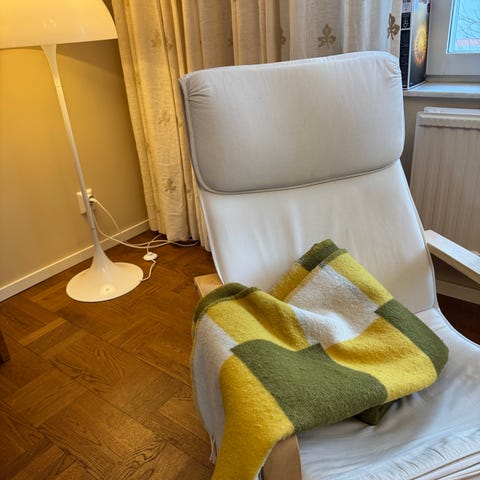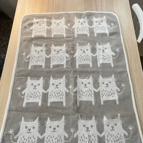 Klippan ullfilt, " house in the forrest ", helt ny, fått i julklapp. 130 x 190 cm. Nypris 1585 kr.