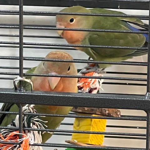 Dvärg papegoja med bur och leksaker samt mat säljes.