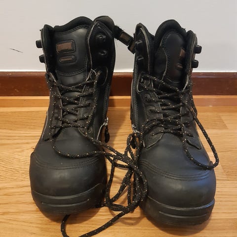 Kängorna är endast använda vid ett enstaka tillfälle och är därför i absolut nyskick. De säljes enbart då passformen tyvärr inte passade mig för just min arbetsplats. Här får du en känga som är ergonomiskt utformad, har ett utmärkt stöd för vristen och en sula med fantastiskt grepp på olika underlag.