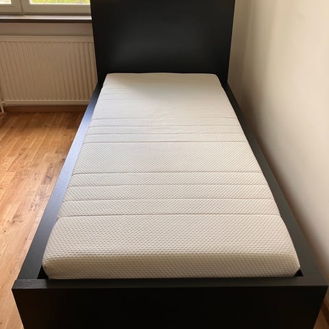 Sängramen är redan isärplockad (se nästsista bilden), redo för hämtning!