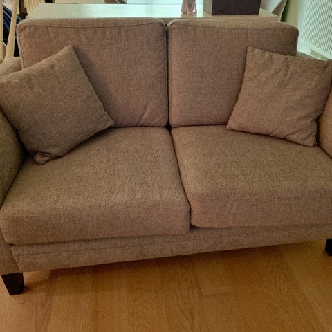 SMEDSTORP 2-sitssoffa från IKEA i mycket bra skick. Beige/Brun klädsel med ek-ben.