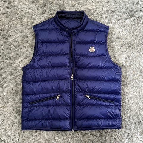 Moncler Västar Dun Västar i blå färg, storlek S. Västen är tillverkad av dunmaterial och är avsedd för män Äkta!!!!!!!