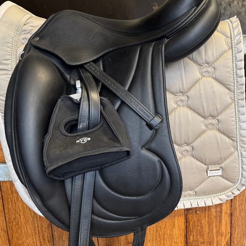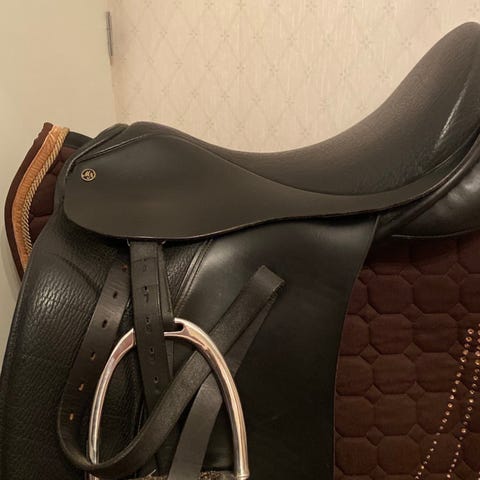 Dressyrsadel från Pessoa modell Anky 16.5” i svart läder. Fransk tillverkning i god läderkvalitet. Gott skick inkl stroppar.