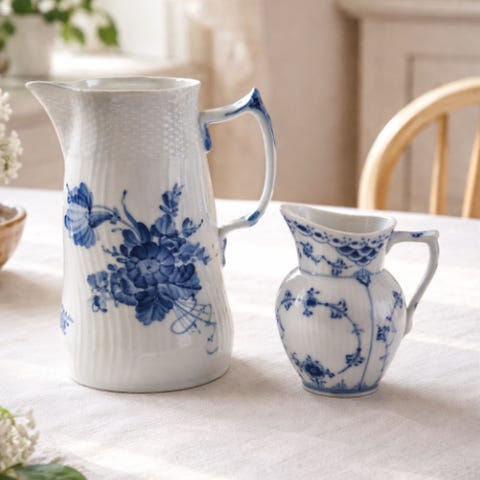 Royal Copenhagen Kaffekanna och gräddkanna i porslin med dekor