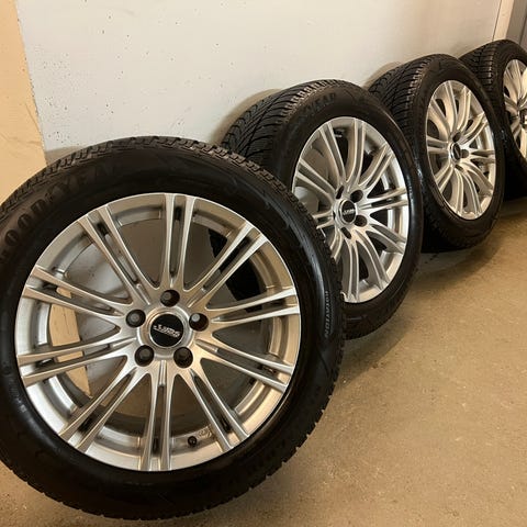 En uppsättning riktigt fräscha ATS aluminium fälgar med Michelin Alpin6 friktionsdäck på. ETT AV DÄCKEN ÄR SKADAD OCH BEHÖVER BYTAS. Minsta mönsterdjup är 6mm. Däcken är från 2020.
