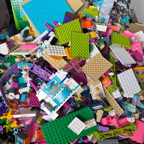 Ca 850g LEGO i bra skick. En blandning av olika LEGO friends set som innehåller många byggstenar men även flera roliga tillbehör som exempelvis:
