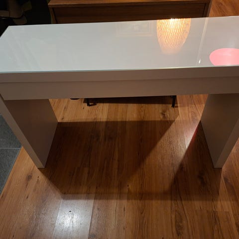 Ikea Malm toalettbord. Gott om plats för smink i lådan.