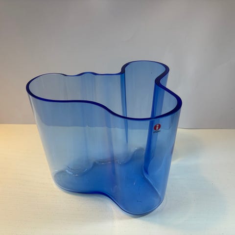 Iittala Alvar Aalto vas i rökfärgat svart glas med karaktäristisk vågformad design.
