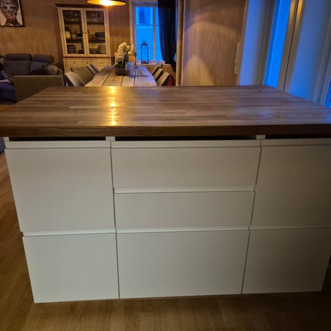 Säljer min IKEA Stenstorp sidobord/köksö. Den har en uppfällbar ekskiva, en låda, tre hyllor 3 hyllor och hjul på de två bakre benen.